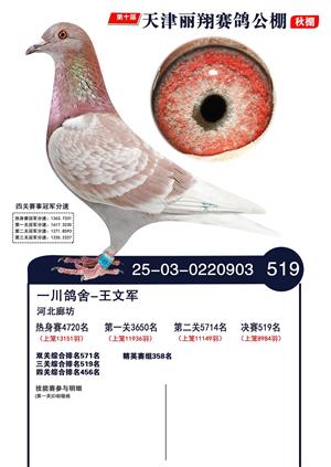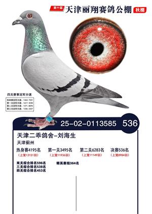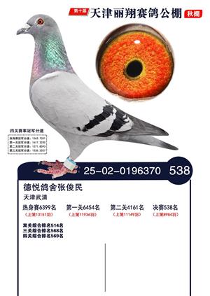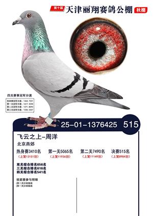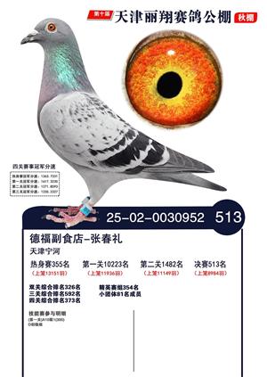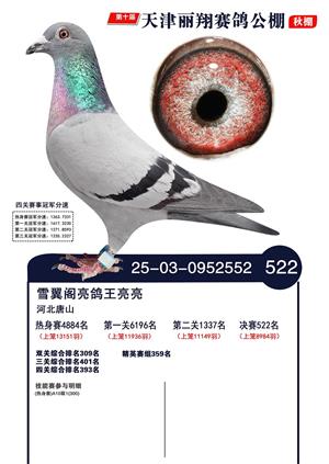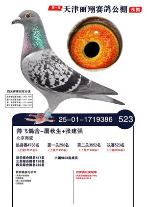 天津丽翔公棚2025年决赛前700名获奖鸽照片