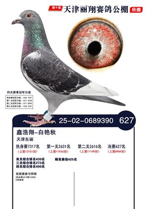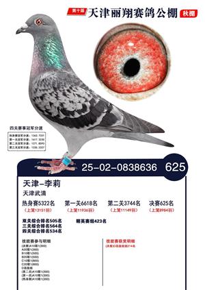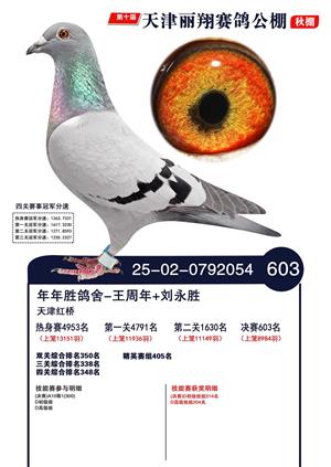 天津丽翔公棚2025年决赛前700名获奖鸽照片