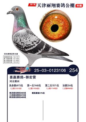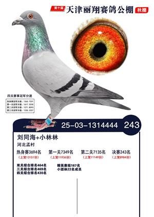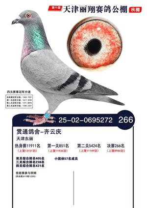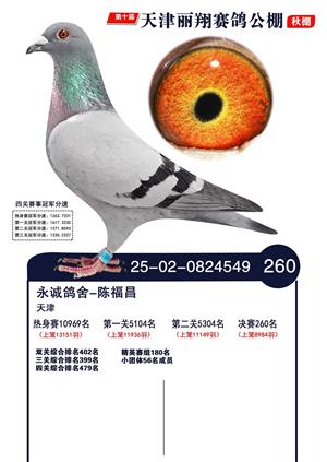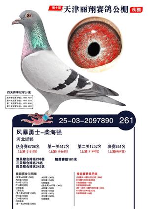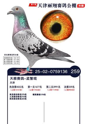 天津丽翔公棚2025年决赛前700名获奖鸽照片
