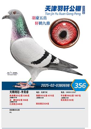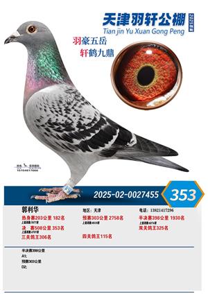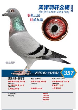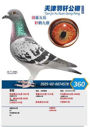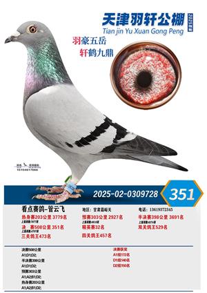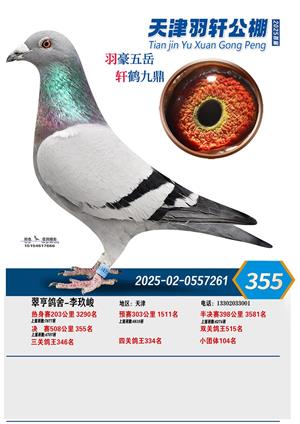天津羽轩赛鸽公棚首届秋季大奖赛获奖鸽照片