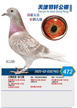 天津羽轩获奖鸽照片