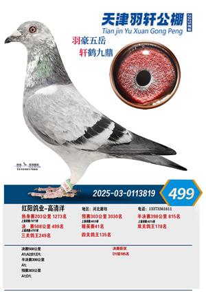 天津羽轩赛鸽公棚首届秋季大奖赛获奖鸽照片