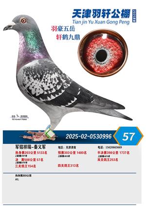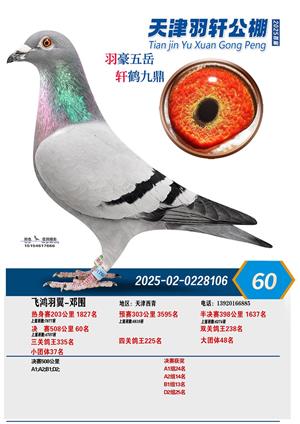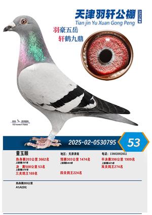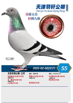 天津羽轩赛鸽公棚首届秋季大奖赛获奖鸽照片
