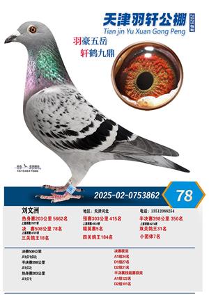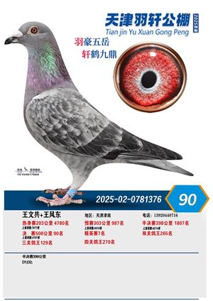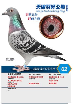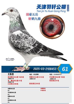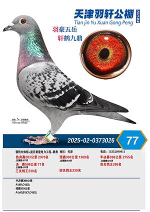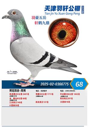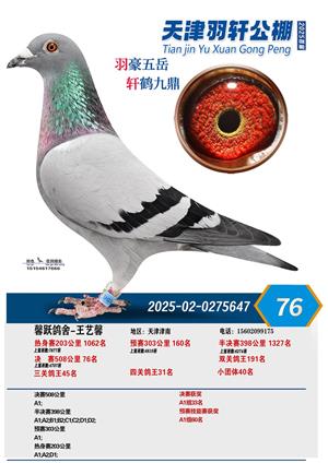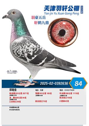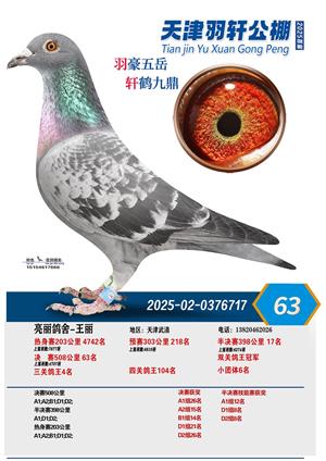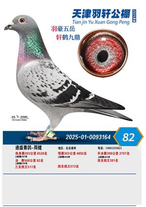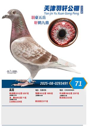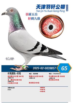 天津羽轩赛鸽公棚首届秋季大奖赛获奖鸽照片
