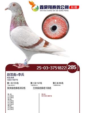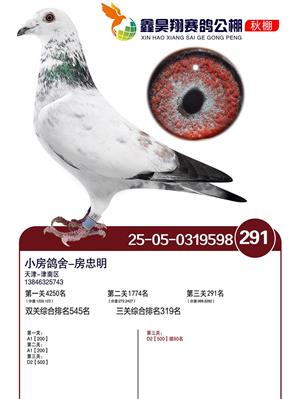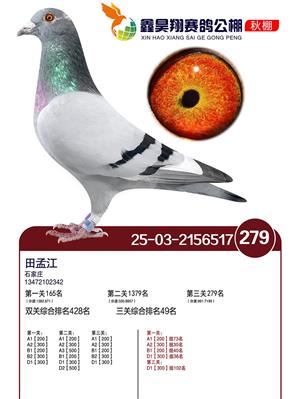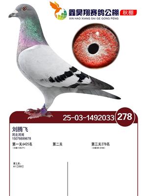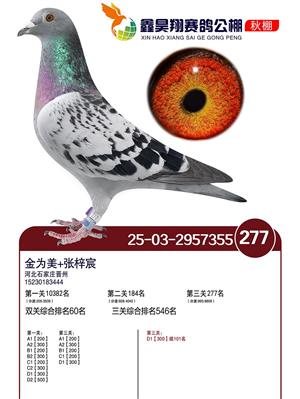 河北鑫昊翔公棚2025年决赛前600名获奖鸽照片