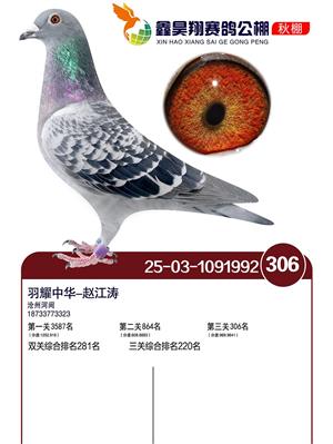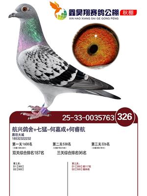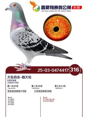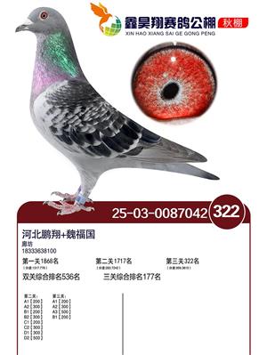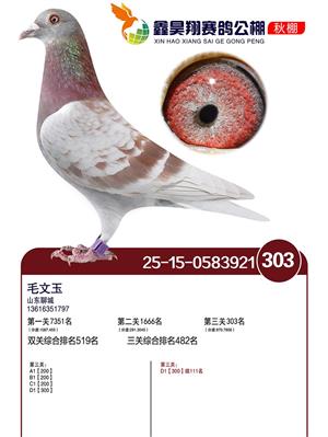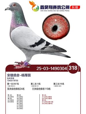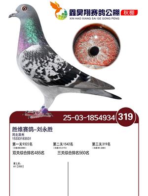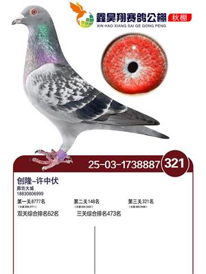 河北鑫昊翔公棚2025年决赛前600名获奖鸽照片