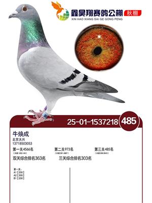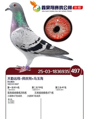 河北鑫昊翔公棚2025年决赛前600名获奖鸽照片