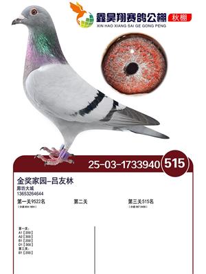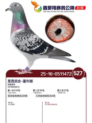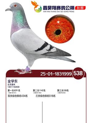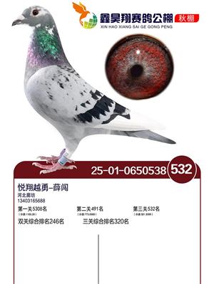 河北鑫昊翔公棚2025年决赛前600名获奖鸽照片