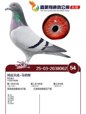 河北鑫昊翔公棚2025年决赛前600名获奖鸽照片