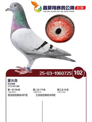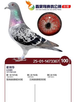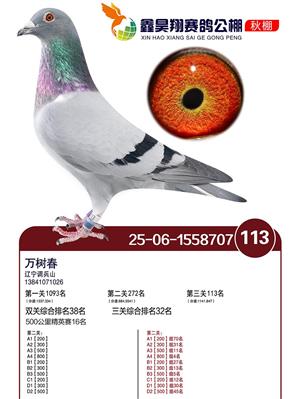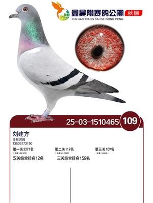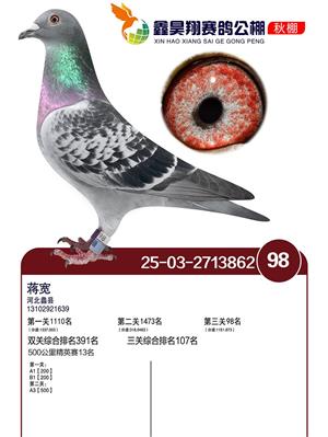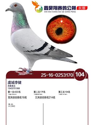 河北鑫昊翔公棚2025年决赛前600名获奖鸽照片