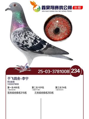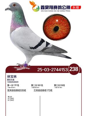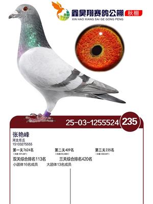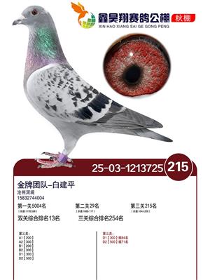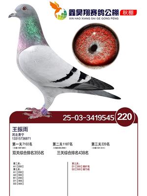 河北鑫昊翔公棚2025年决赛前600名获奖鸽照片