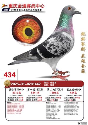 重庆金通2025年第八届秋赛总决赛获奖鸽照片