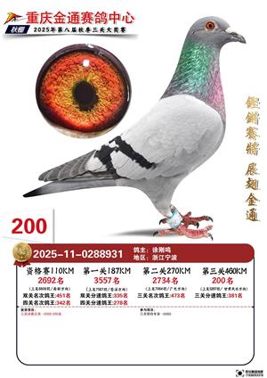 重庆金通2025年第八届秋赛总决赛获奖鸽照片