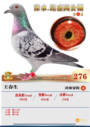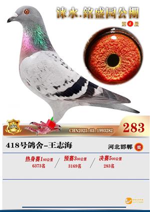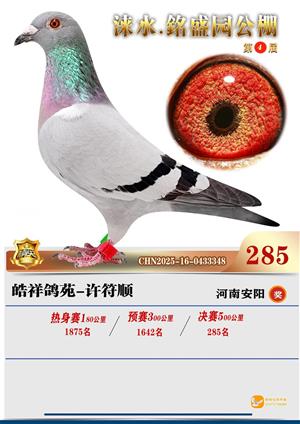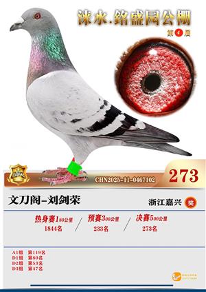 銘盛园2025年决赛1-500名获奖鸽照片