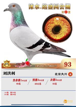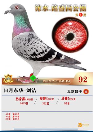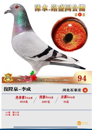銘盛园2025年决赛1-500名获奖鸽照片