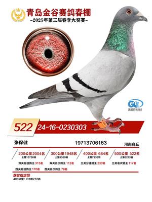 青岛金谷春棚 2025年第三届春季决赛获奖鸽照片