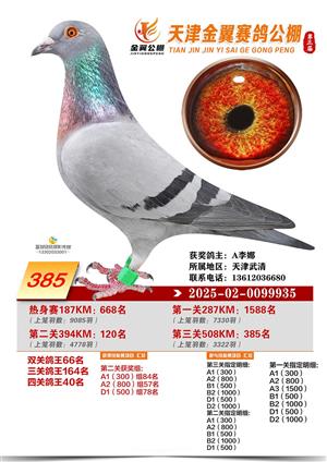 天津金翼公棚2025年决赛获奖鸽照片