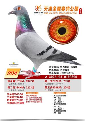 天津金翼公棚2025年决赛获奖鸽照片