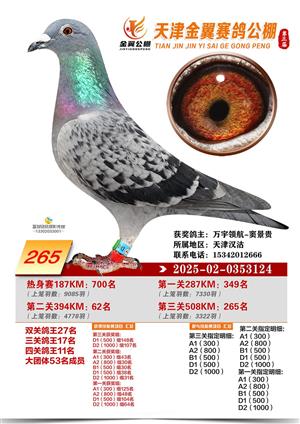 天津金翼公棚2025年决赛获奖鸽照片