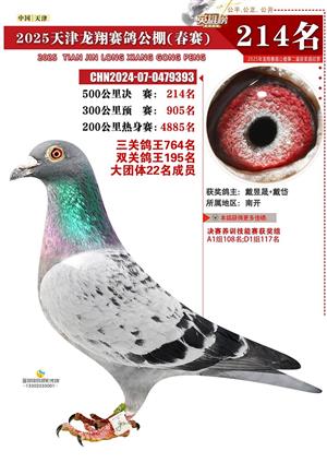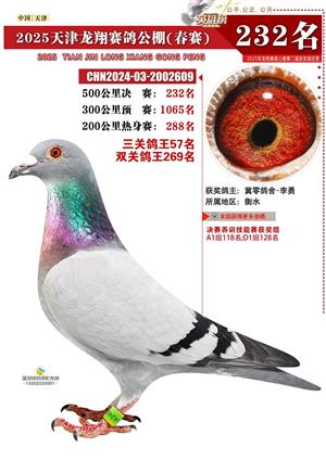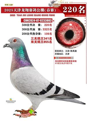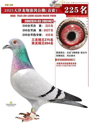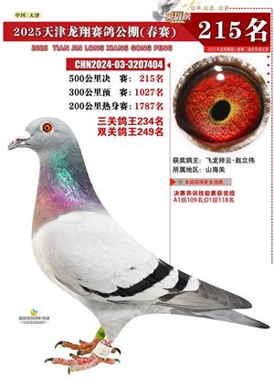 天津龙翔公棚500公里决赛获奖鸽展示