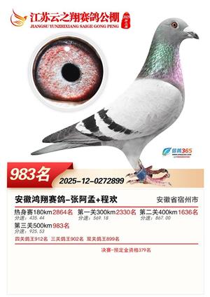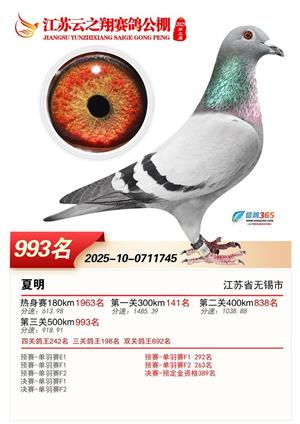 江苏云之翔公棚2025年决赛获奖鸽照片
