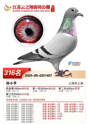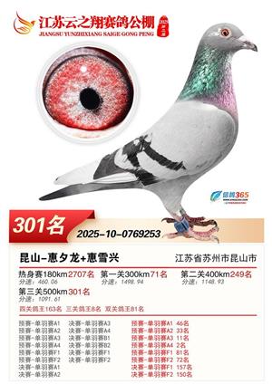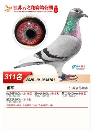 江苏云之翔公棚2025年决赛获奖鸽照片