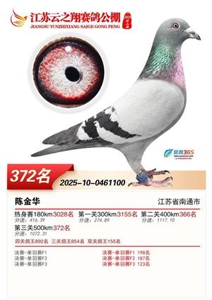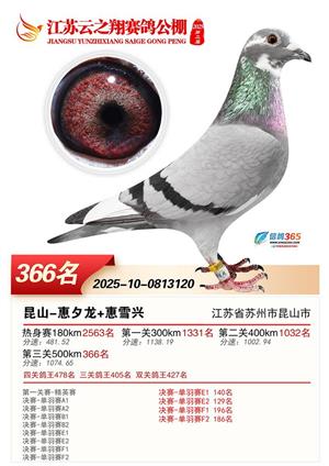 江苏云之翔公棚2025年决赛获奖鸽照片