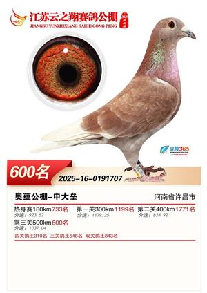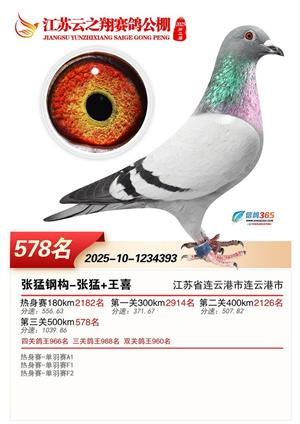 江苏云之翔公棚2025年决赛获奖鸽照片