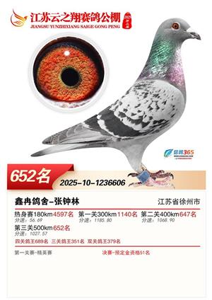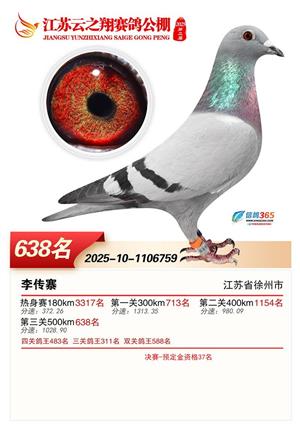江苏云之翔公棚2025年决赛获奖鸽照片