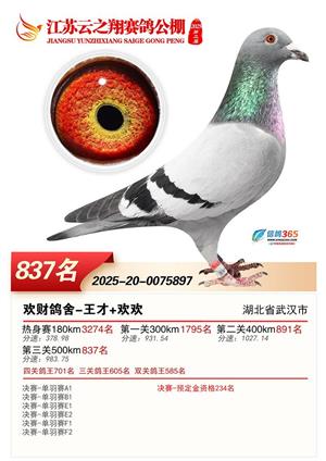 江苏云之翔公棚2025年决赛获奖鸽照片