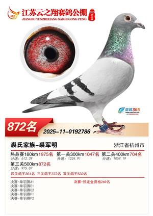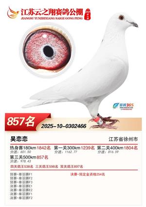 江苏云之翔公棚2025年决赛获奖鸽照片