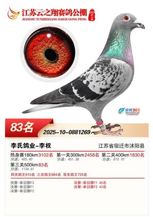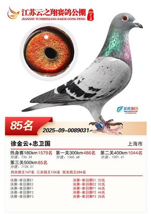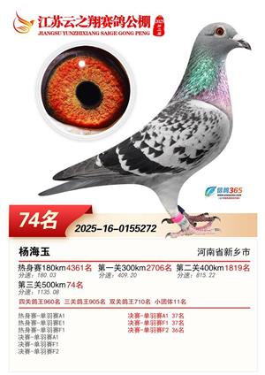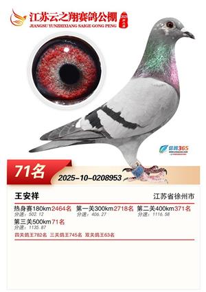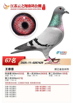 江苏云之翔公棚2025年决赛获奖鸽照片