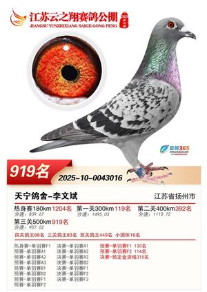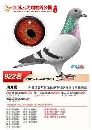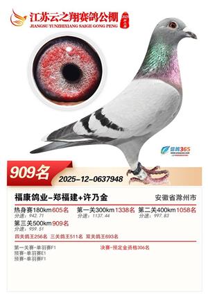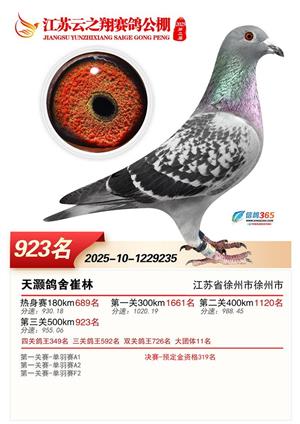 江苏云之翔公棚2025年决赛获奖鸽照片