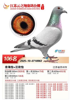 江苏云之翔公棚2025年决赛获奖鸽照片