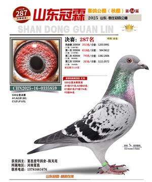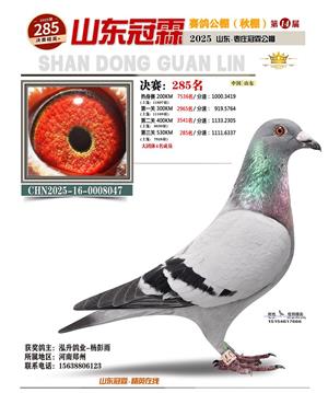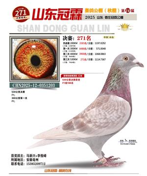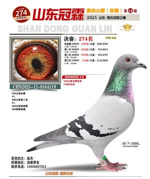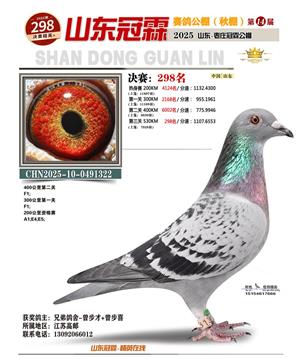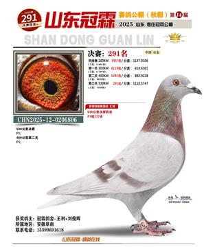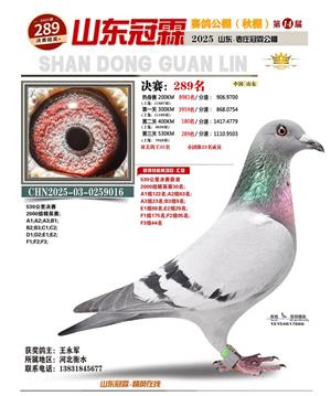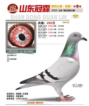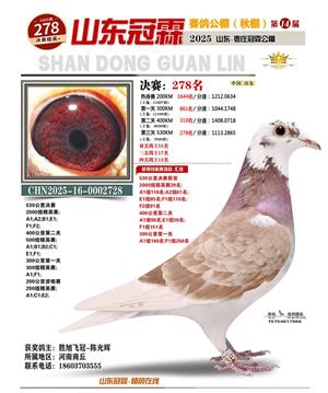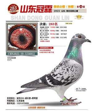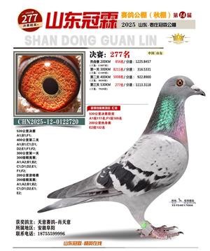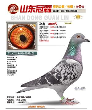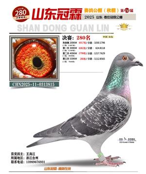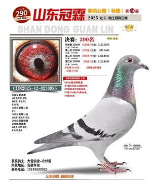 山东冠霖赛鸽公棚决赛1-1000名获奖鸽照片