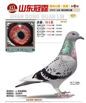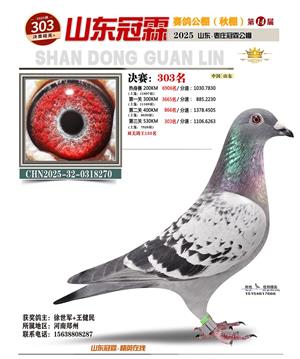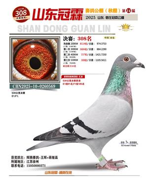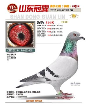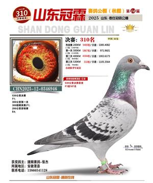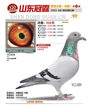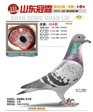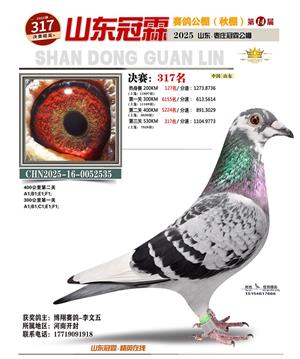 山东冠霖赛鸽公棚决赛1-1000名获奖鸽照片