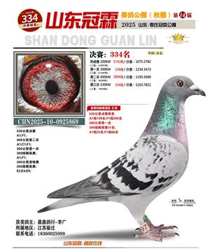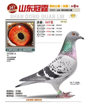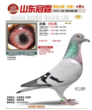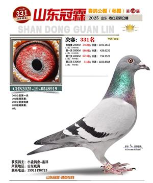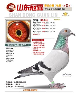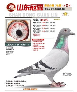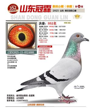 山东冠霖赛鸽公棚决赛1-1000名获奖鸽照片
