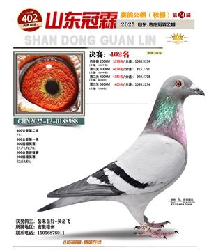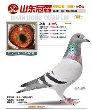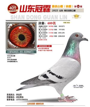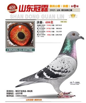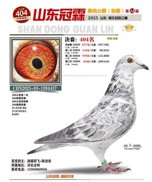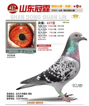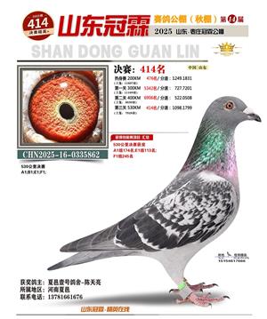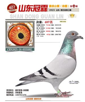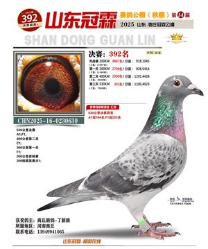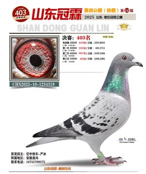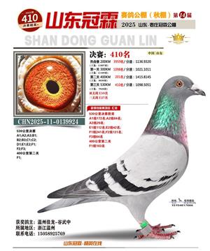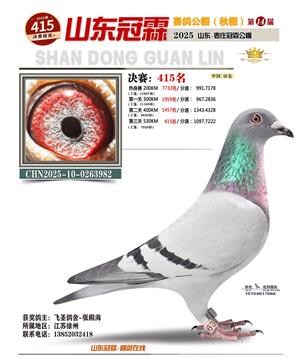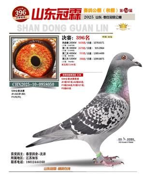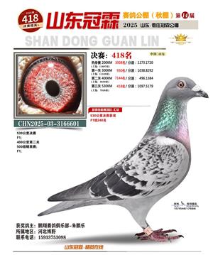 山东冠霖赛鸽公棚决赛1-1000名获奖鸽照片