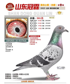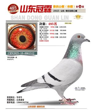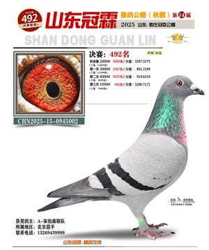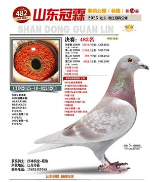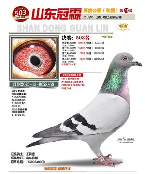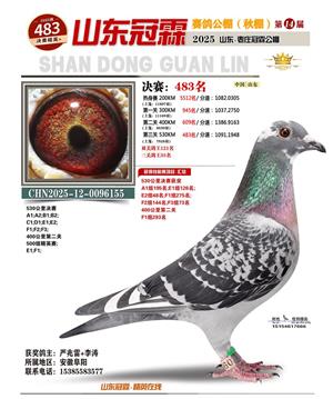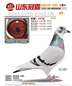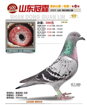山东冠霖赛鸽公棚决赛1-1000名获奖鸽照片