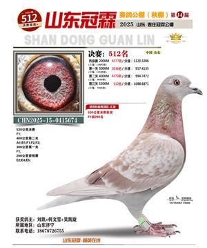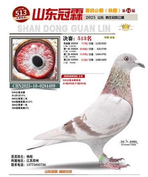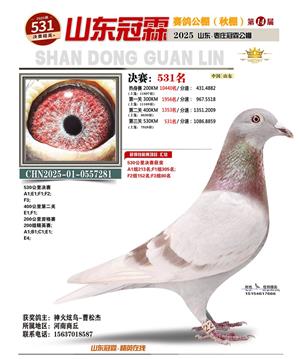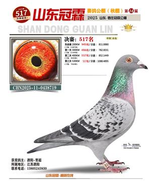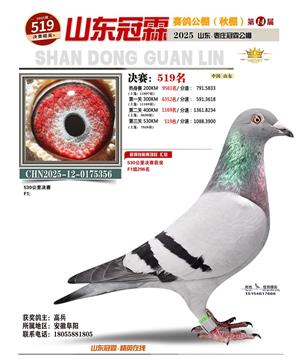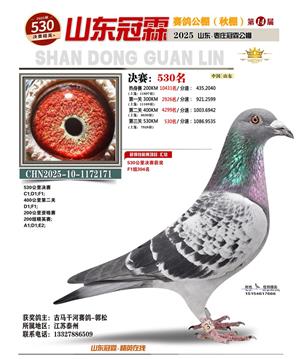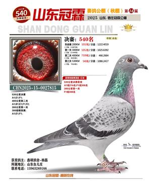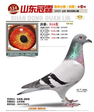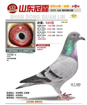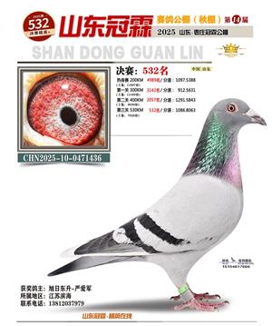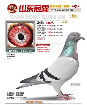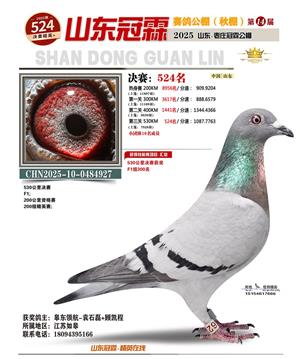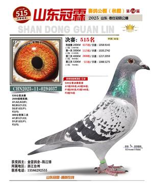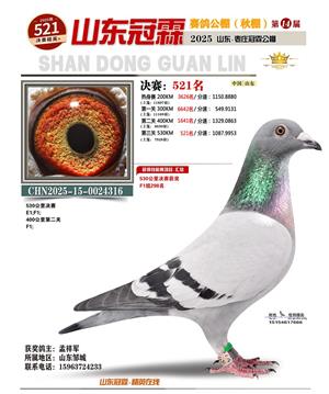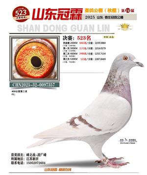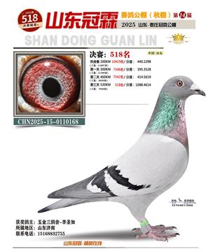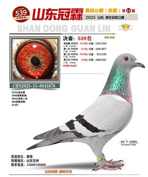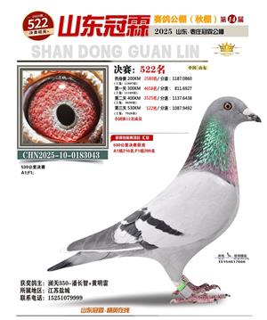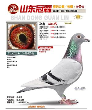 山东冠霖赛鸽公棚决赛1-1000名获奖鸽照片