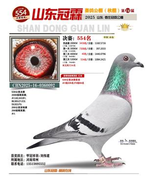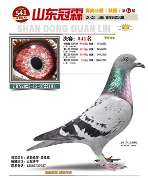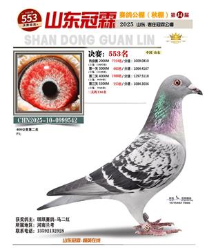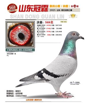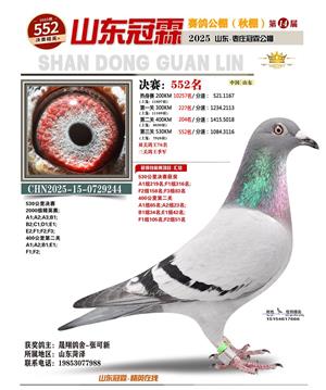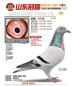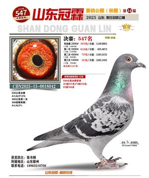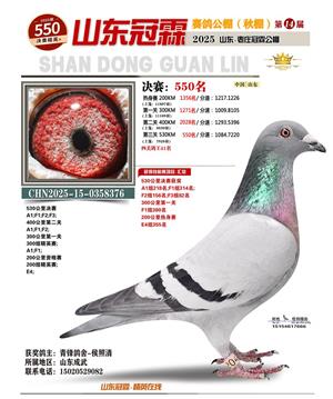 山东冠霖赛鸽公棚决赛1-1000名获奖鸽照片