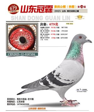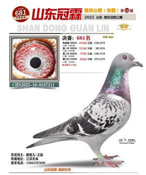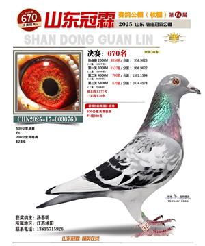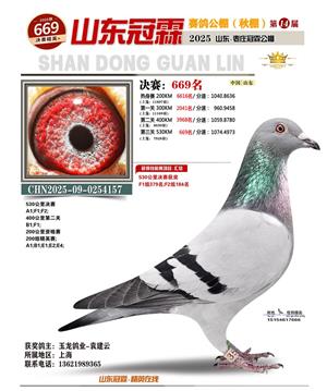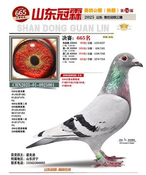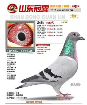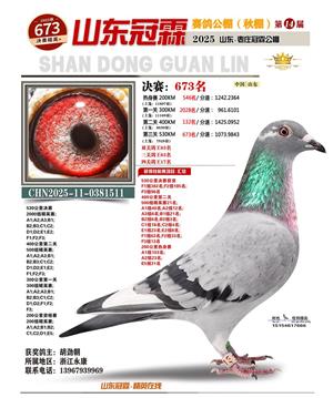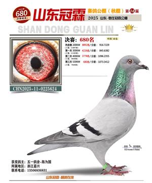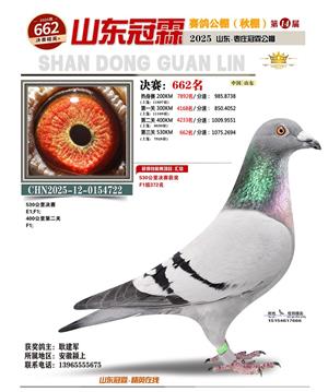 山东冠霖赛鸽公棚决赛1-1000名获奖鸽照片