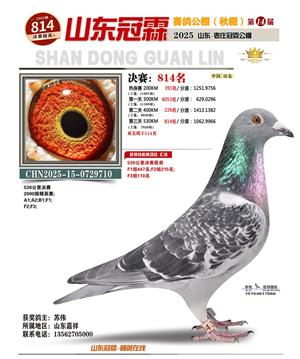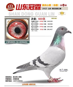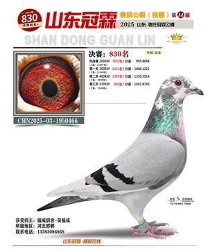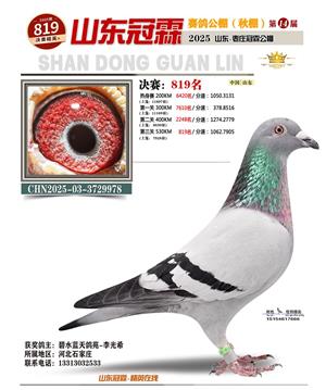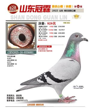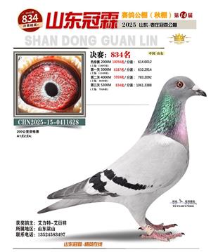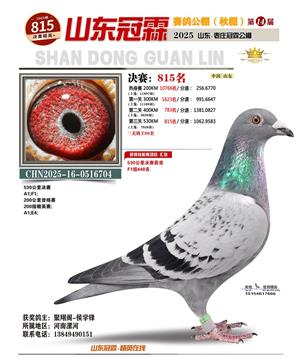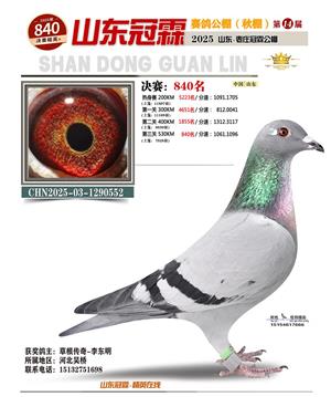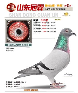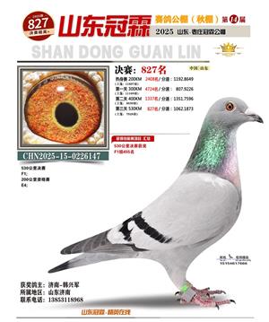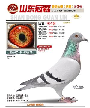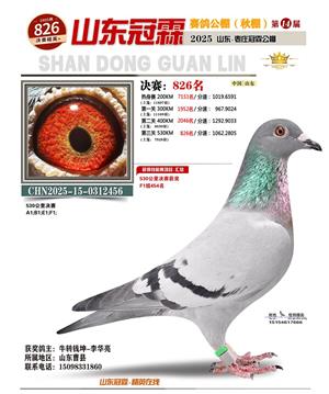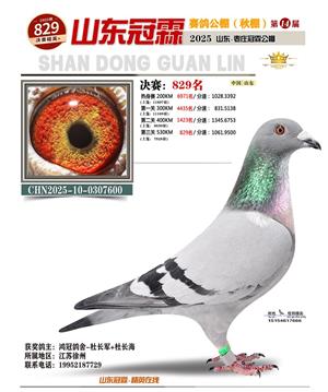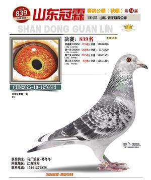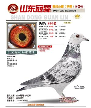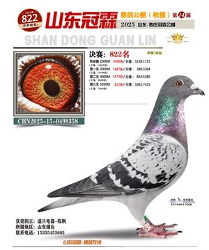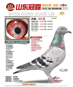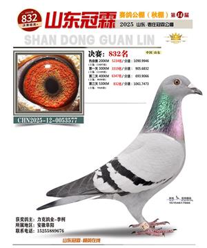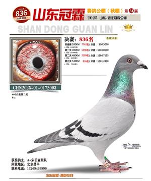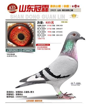 山东冠霖赛鸽公棚决赛1-1000名获奖鸽照片