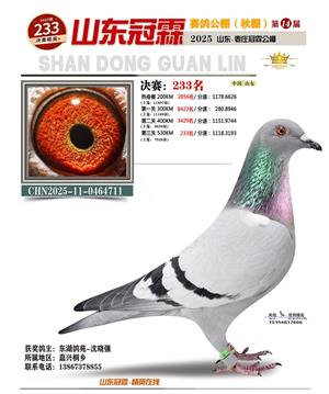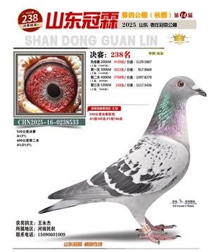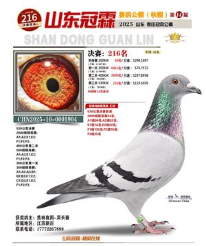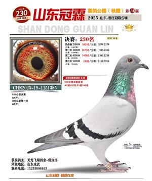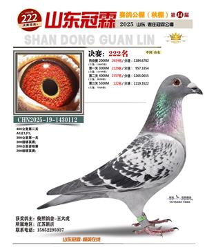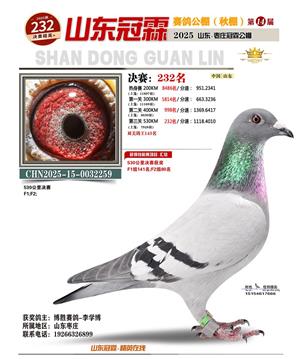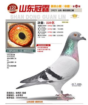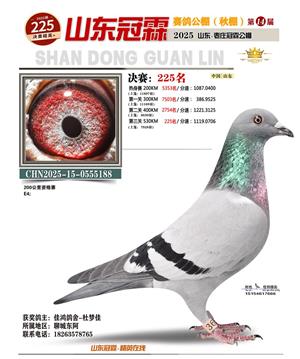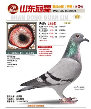山东冠霖赛鸽公棚决赛1-1000名获奖鸽照片