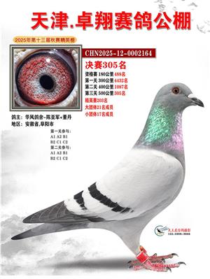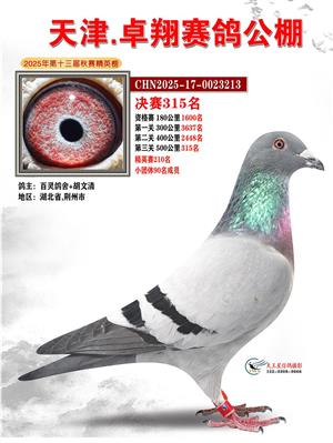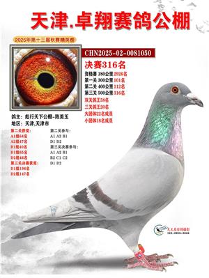 天津卓翔公棚2025年决赛获奖鸽照片