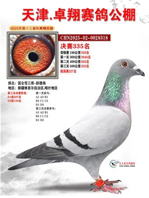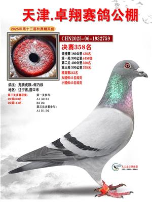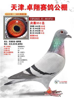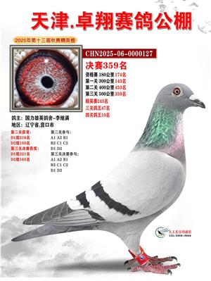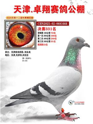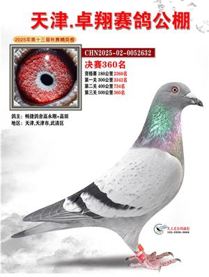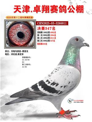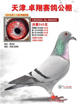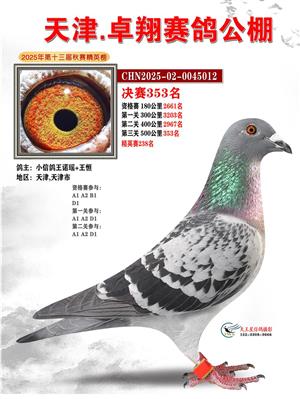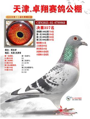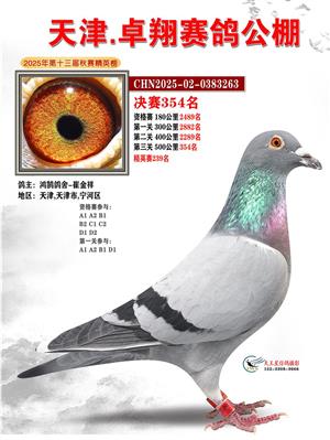 天津卓翔公棚2025年决赛获奖鸽照片