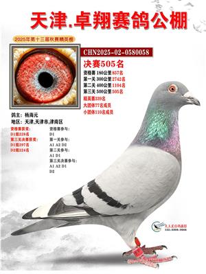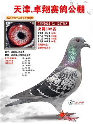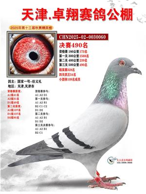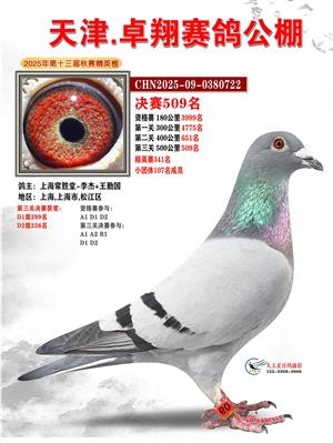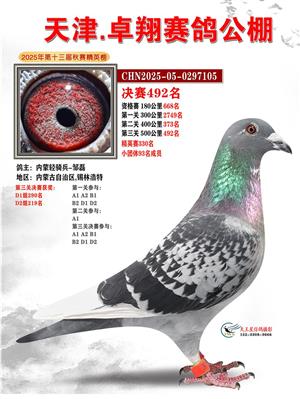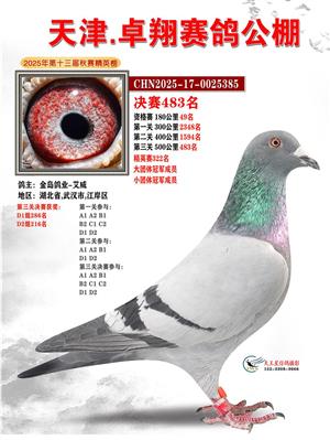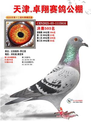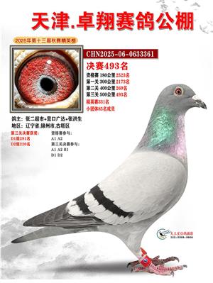 天津卓翔公棚2025年决赛获奖鸽照片