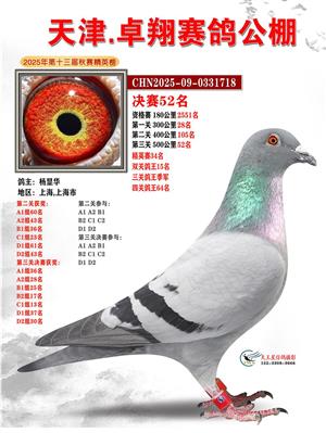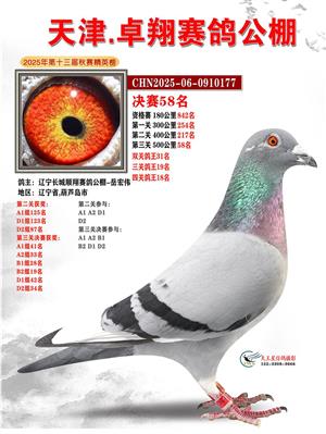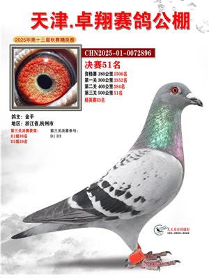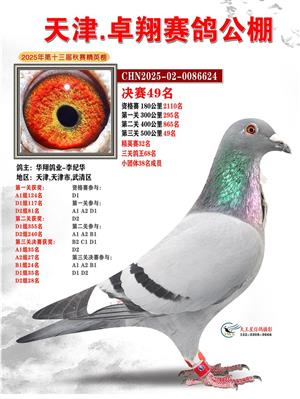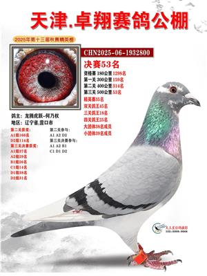 天津卓翔公棚2025年决赛获奖鸽照片
