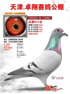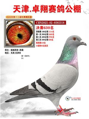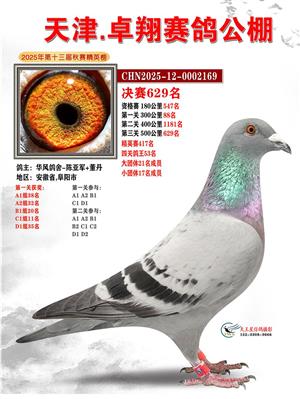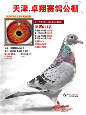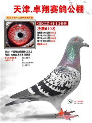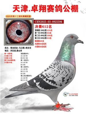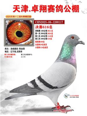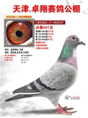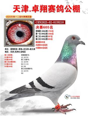 天津卓翔公棚2025年决赛获奖鸽照片