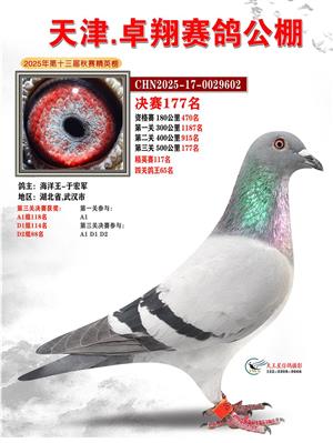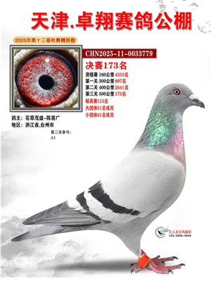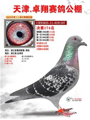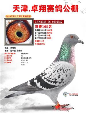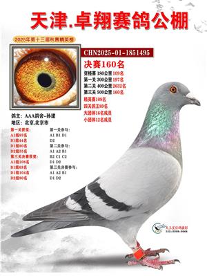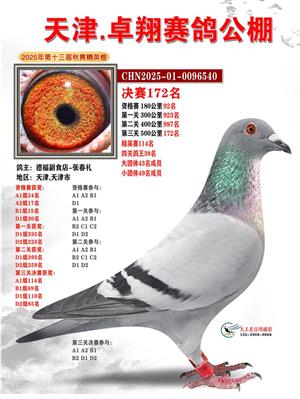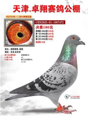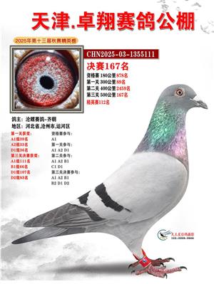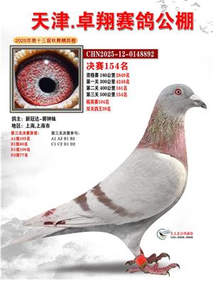 天津卓翔公棚2025年决赛获奖鸽照片